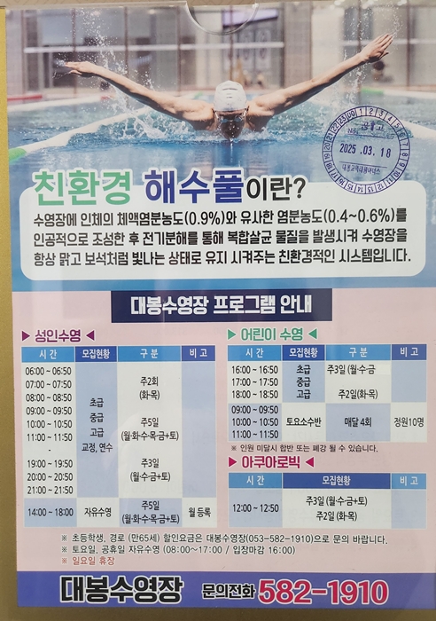 📞 수강 문의: 대봉수영장 053-582-1910