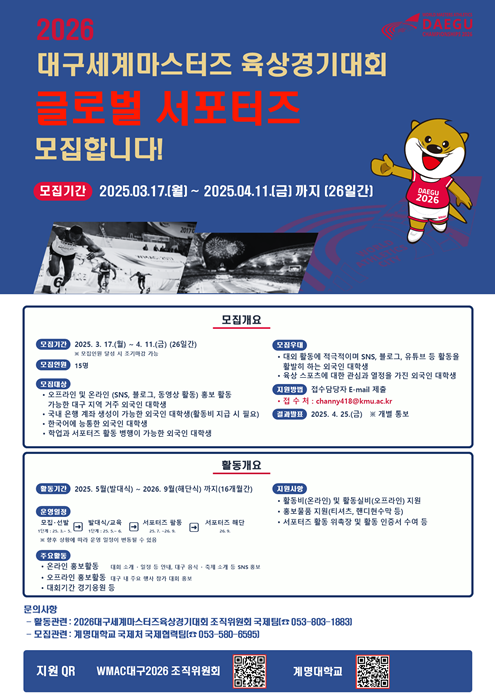 - 접수방법 : 파워풀대구페스티벌 공식 홈페이지 접수